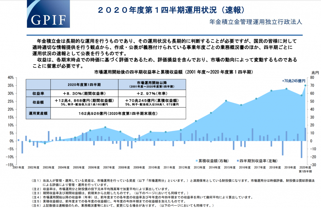 ※年金積立管理運用独立行政法人(GPIF)2020年度第1四半期運用状況(速報)